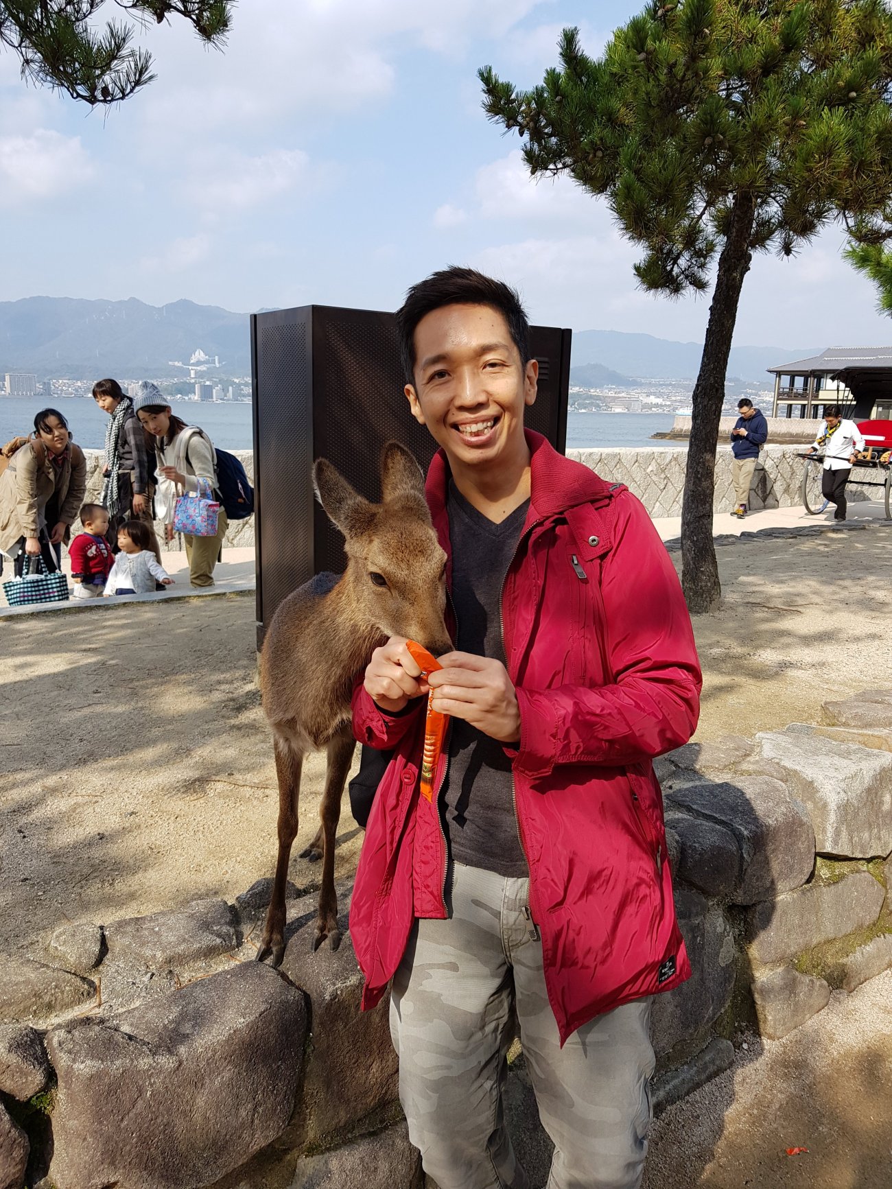 playing with deers on the island. They are so so so friendly. Very cute too. If you have biscuits and such, they will follow you everywhere like a puppy.