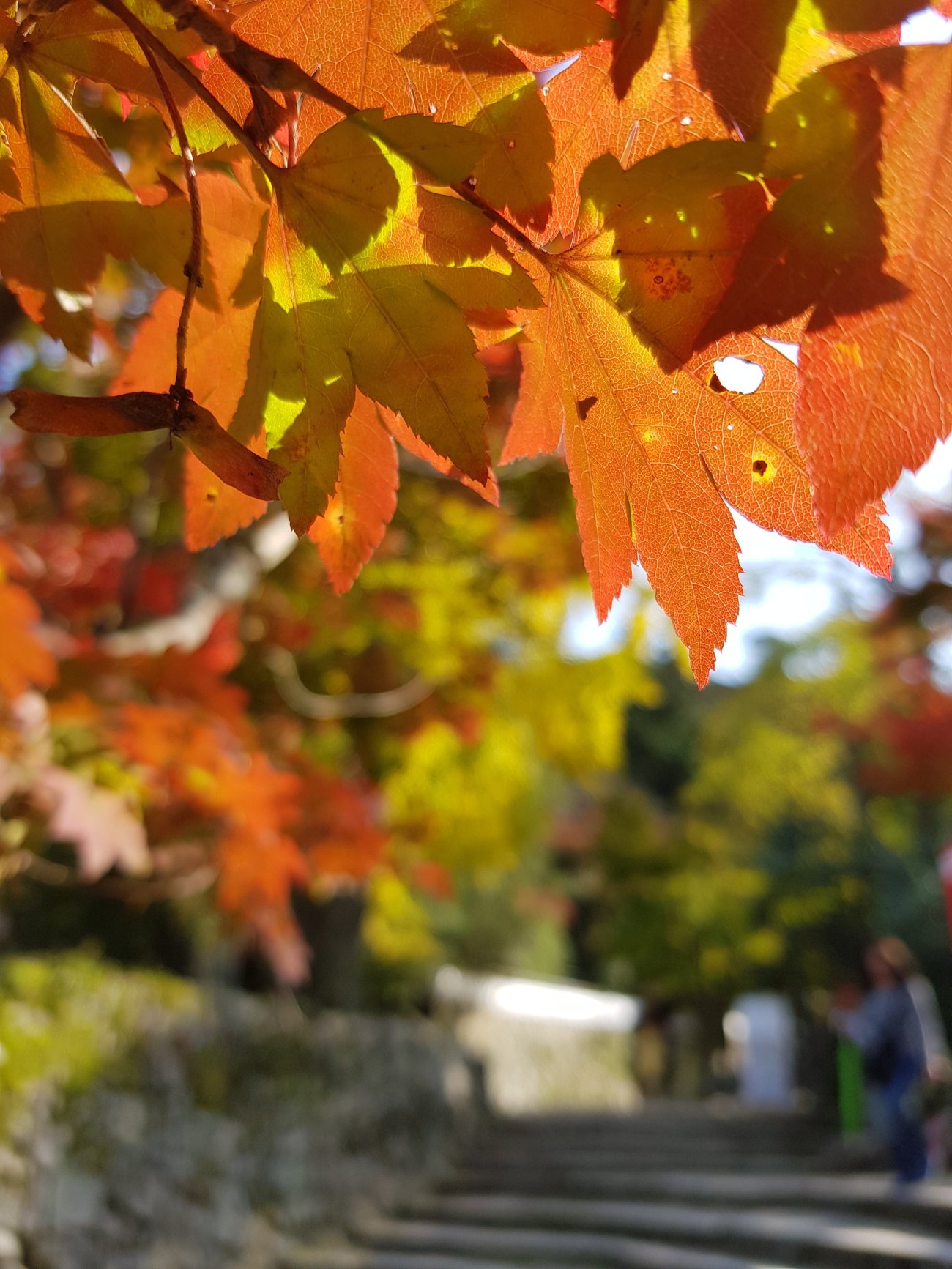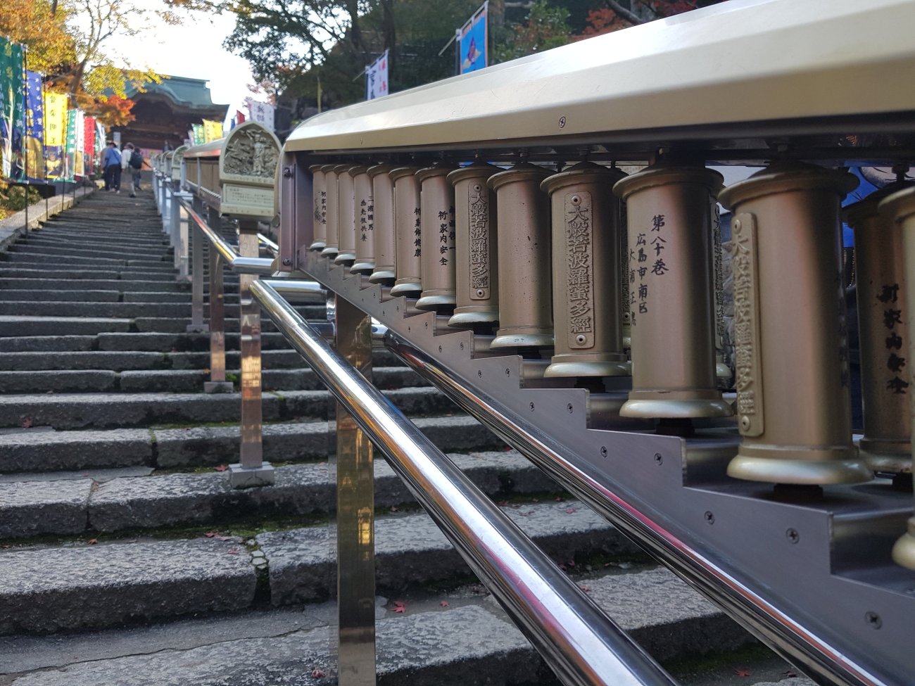 The autumn leaves are spectacular too. Starting at the entrance, you get to turn prayer wheels as you climb. REMEMBER, Buddhist prayer wheel is to be turned in clockwise direction! Besides the entrance, there is a bell that you can strike once. Soooo fun.