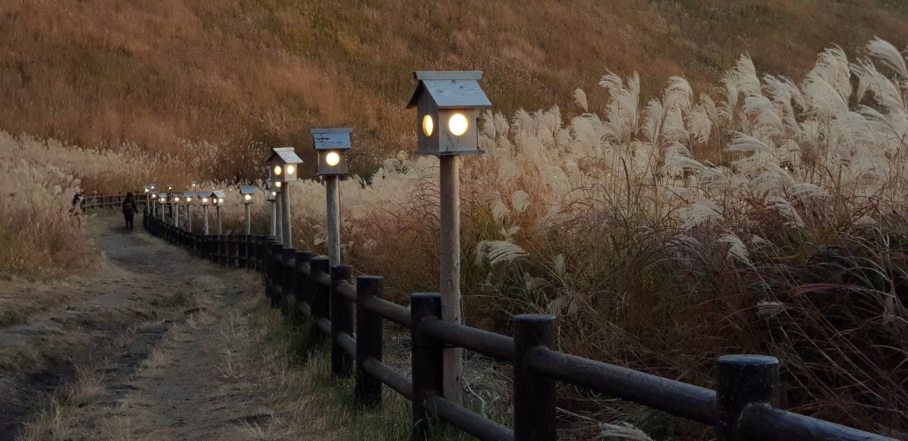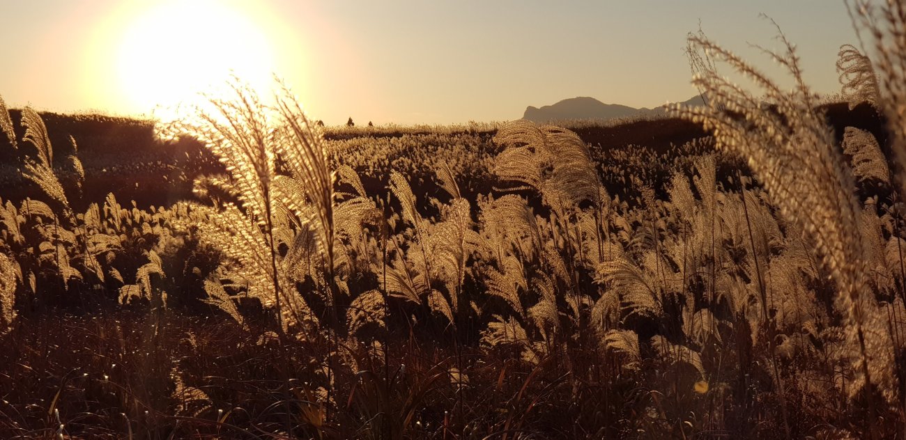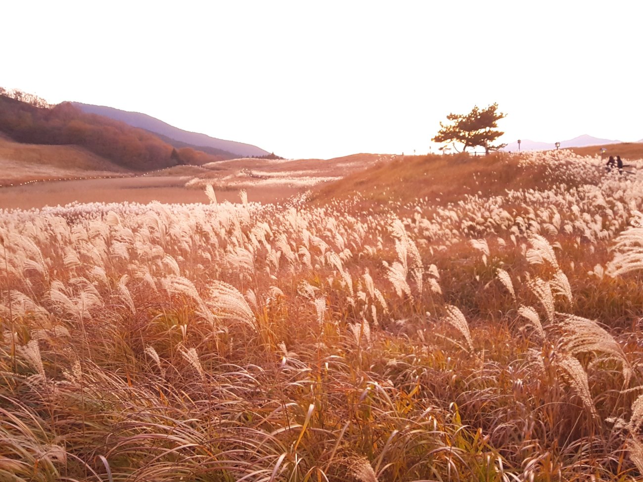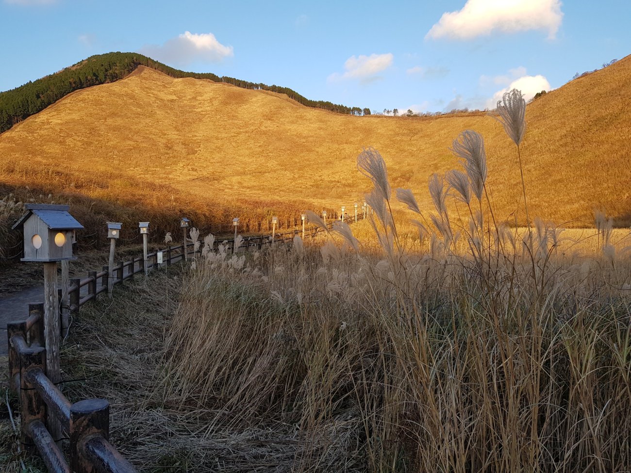 The highlight of today is the pampass grass field on Soni Kogen highland. An entire mountains of pampass grass that turn silver and gold when the sun is setting. Swept by strong mountain winds, it resemble a sea of gold. Spectacular.