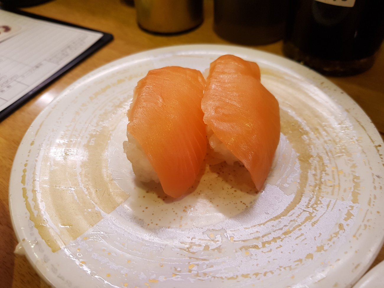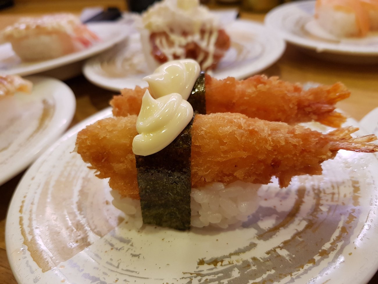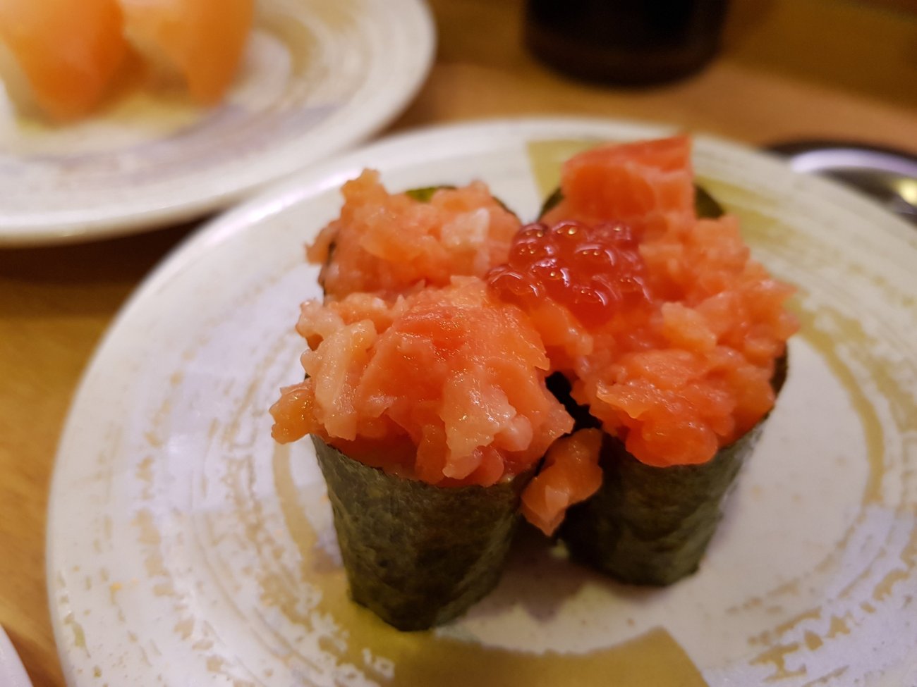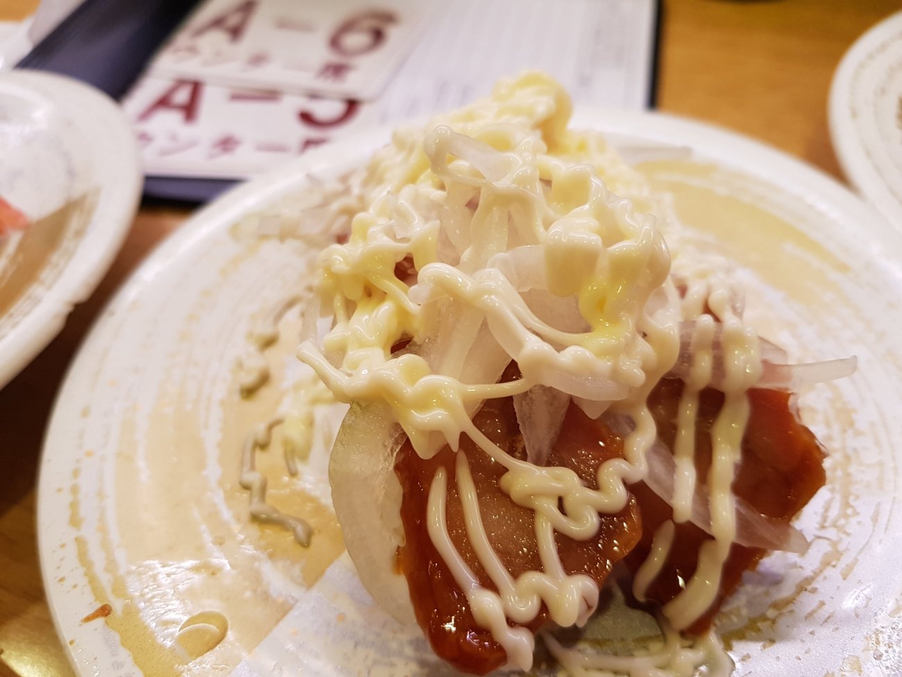 Sushi dinner in Osaka is in a conveyor belt restaurant. Each plate at 100 yen is wickedly low price. Quality is good and variety is astounding though. A very enjoyable meal for me.
