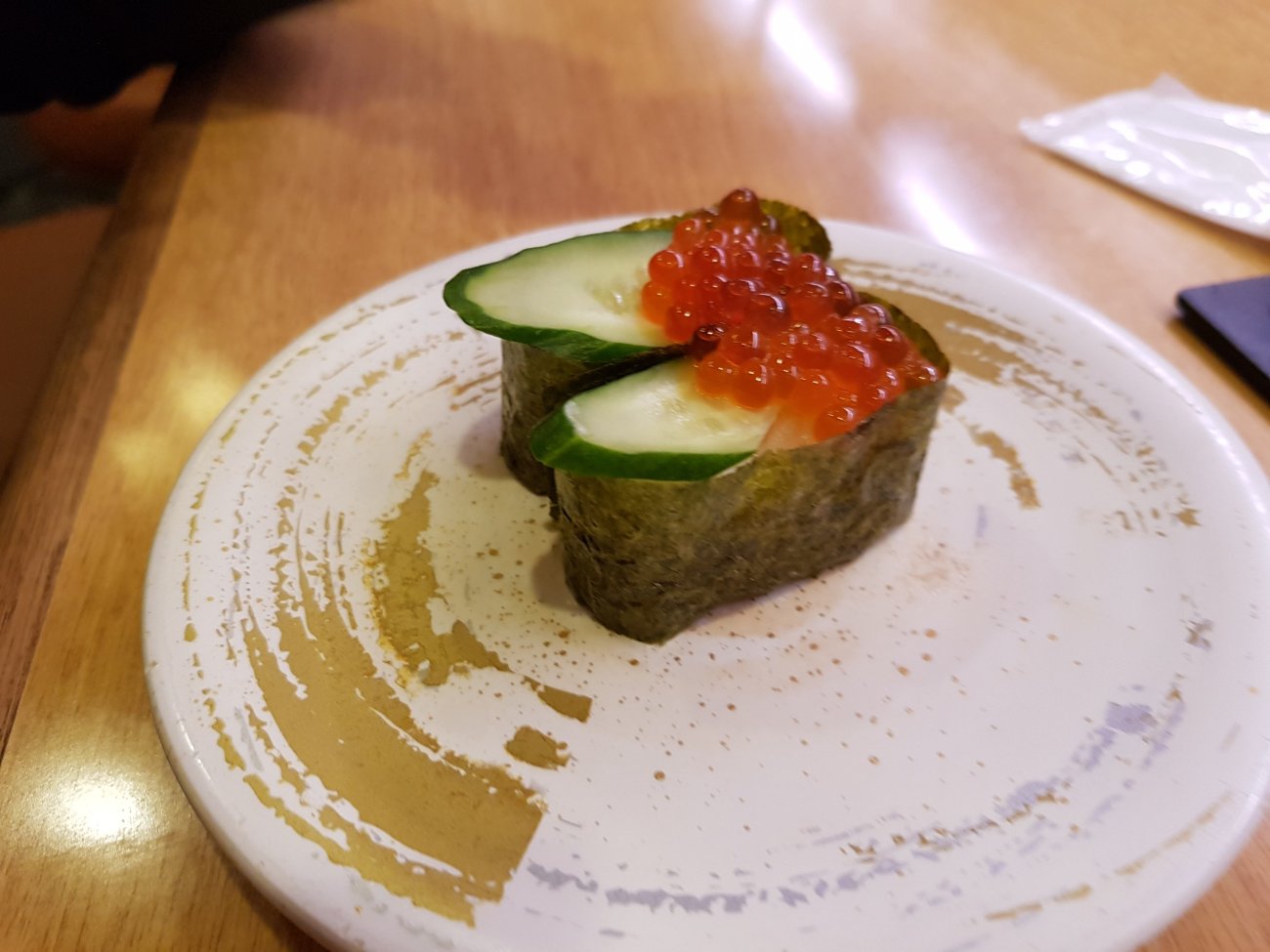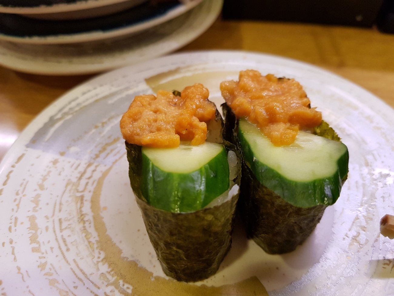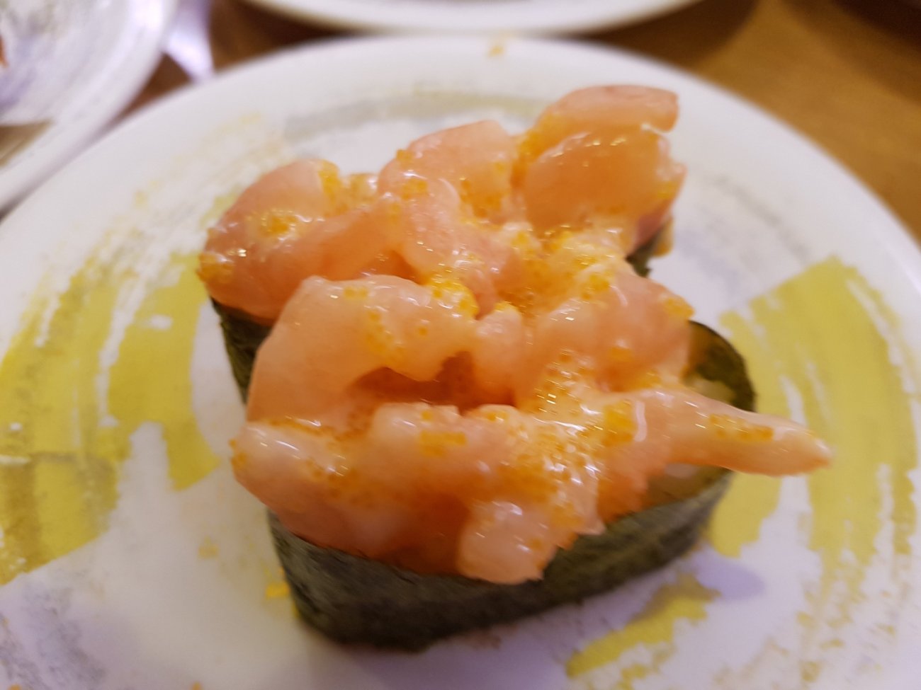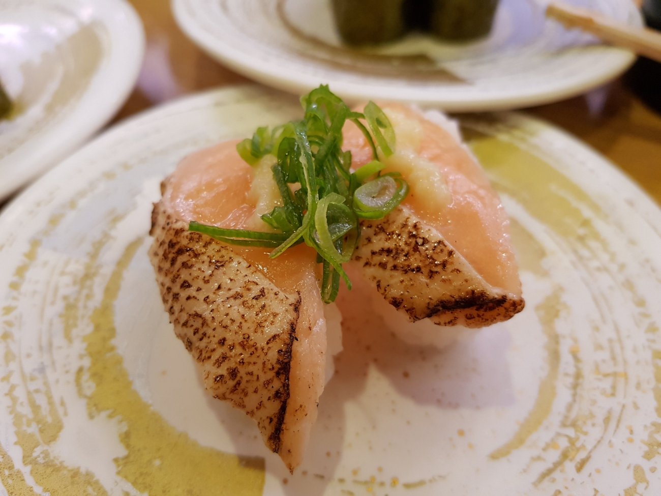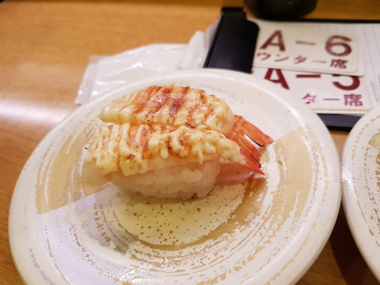 Sushi dinner in Osaka is in a conveyor belt restaurant. Each plate at 100 yen is wickedly low price. Quality is good and variety is astounding though. A very enjoyable meal for me.