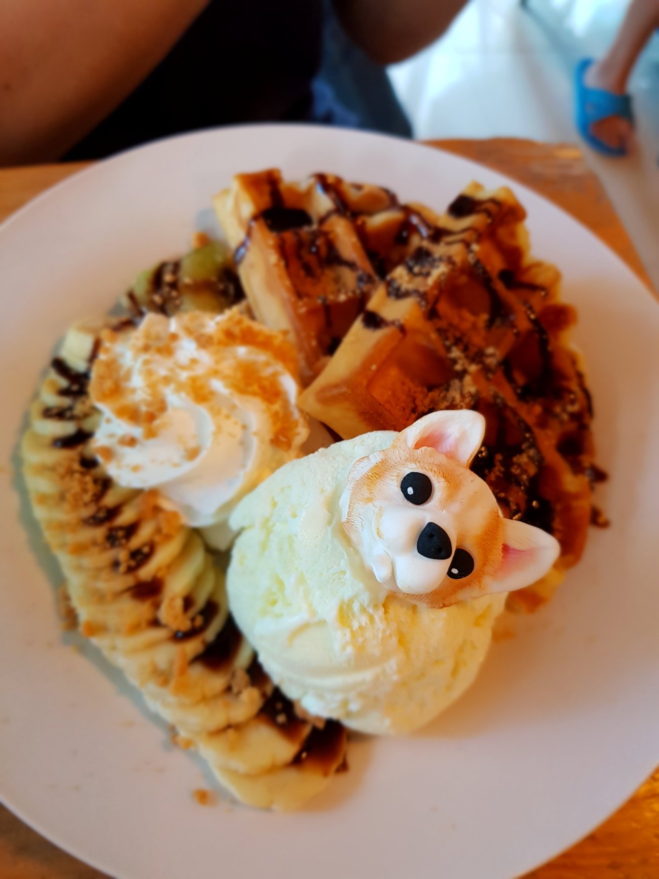 I had waffle for dessert and true to theme, it comes decorated with little doggy figurine.