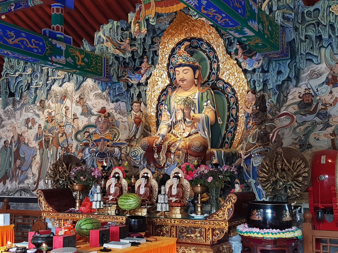 The clever monk invented this temple. All 5 Manjushri under one roof. Situated at a hilltop provides a little bit of challenge in ascending, thus giving you s sense of achievement. and hey the emperor loved this idea. The monk was rewarded and people like me love this idea too.