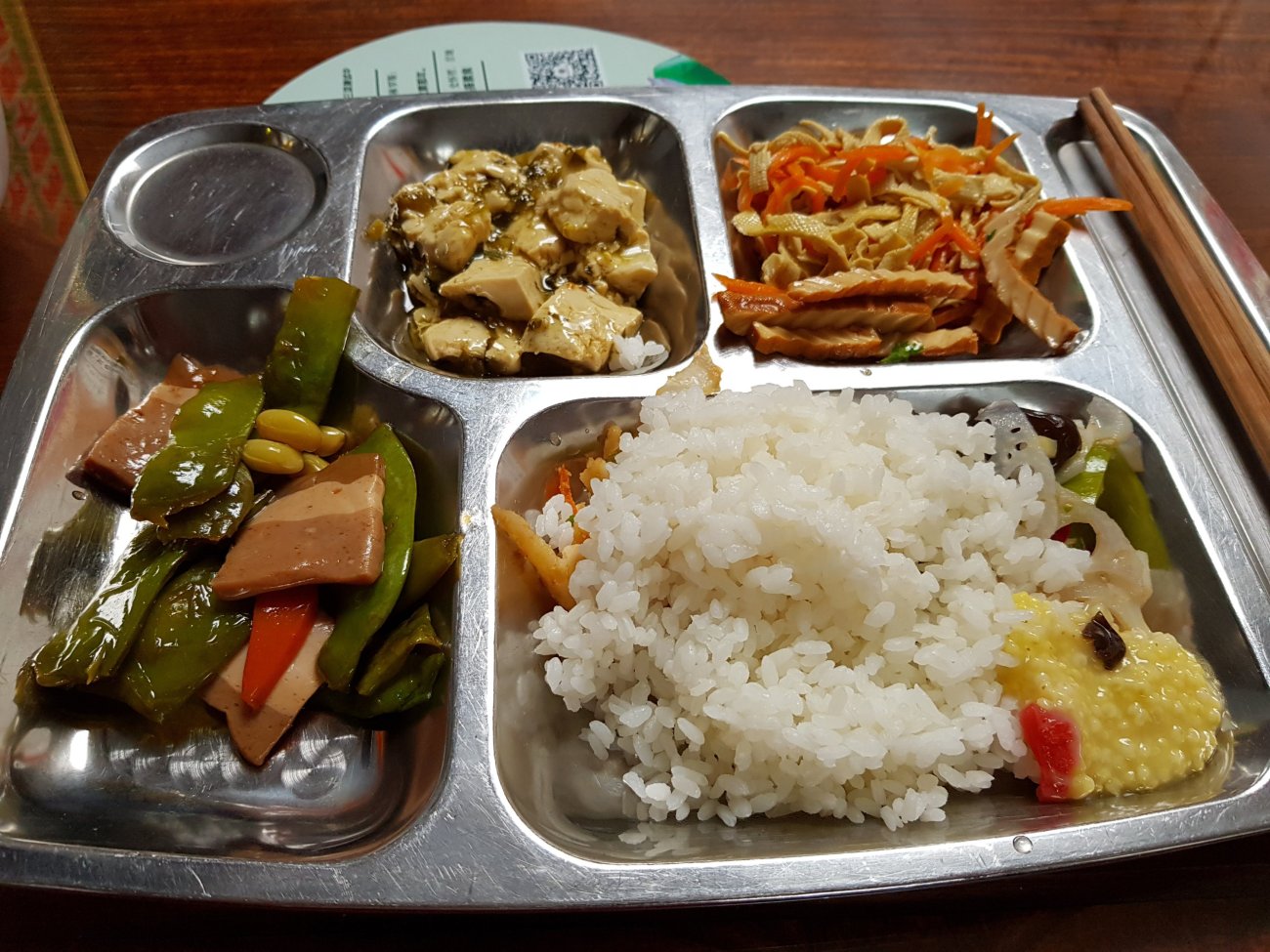 For dinner, I found my ideal meal today. VEGETARIAN buffet in a temple! For Rmb 38 you can have soup, fruits, different vegetarian dishes.