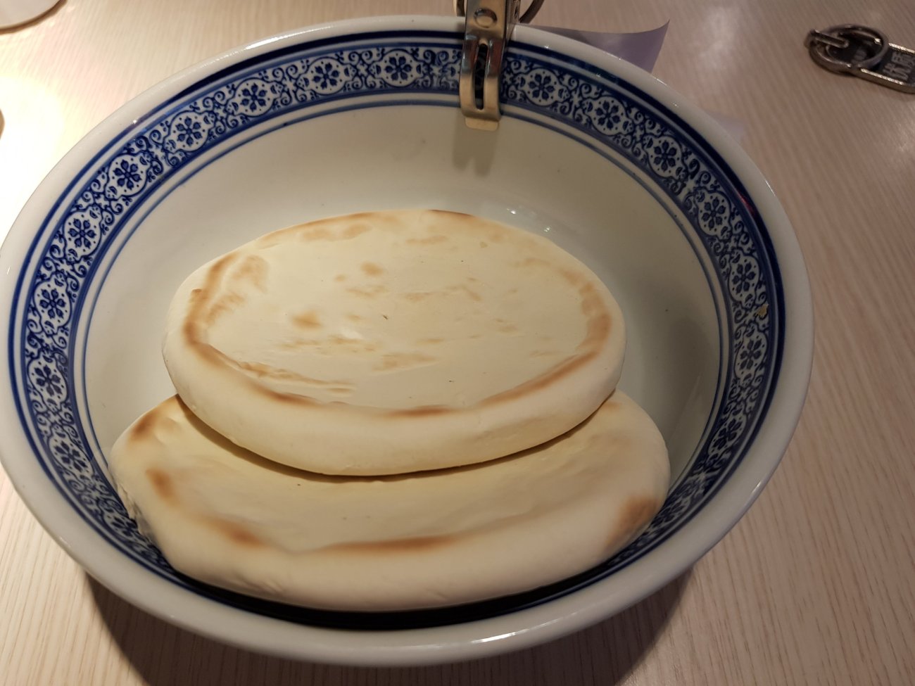 To eat this, you need to break the bread into tiny bits. Once you are done, the waitress will collect the bowl of bread bits and send it to the kitchen.