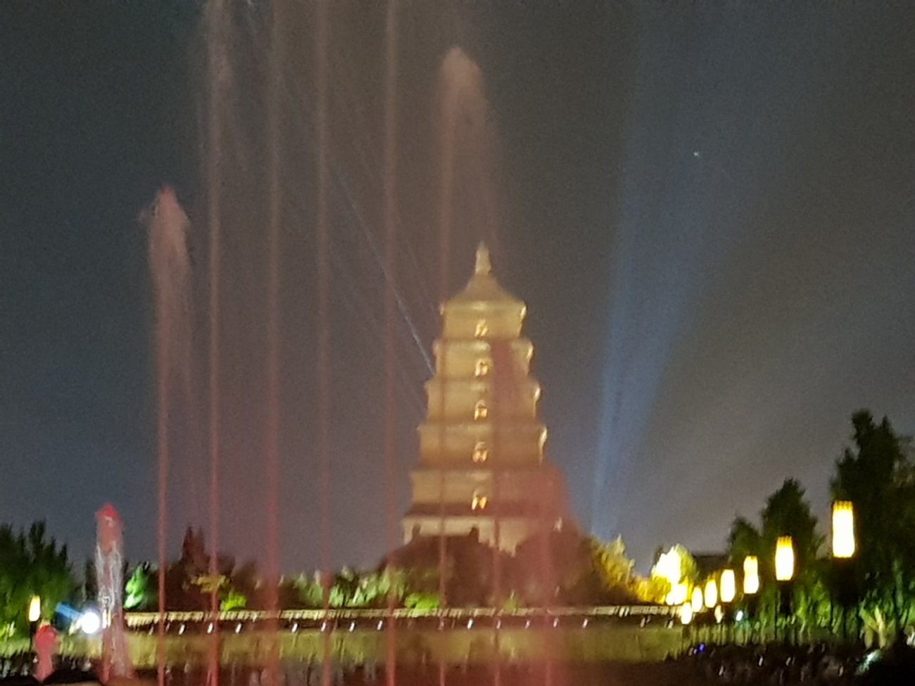 At night, the avenue leading to the pagoda becomes a giant light show with music fountain.
