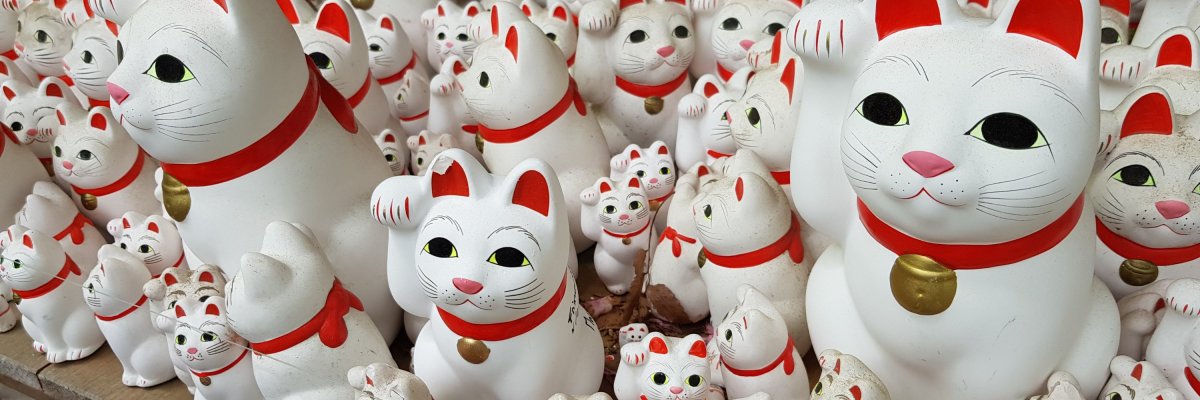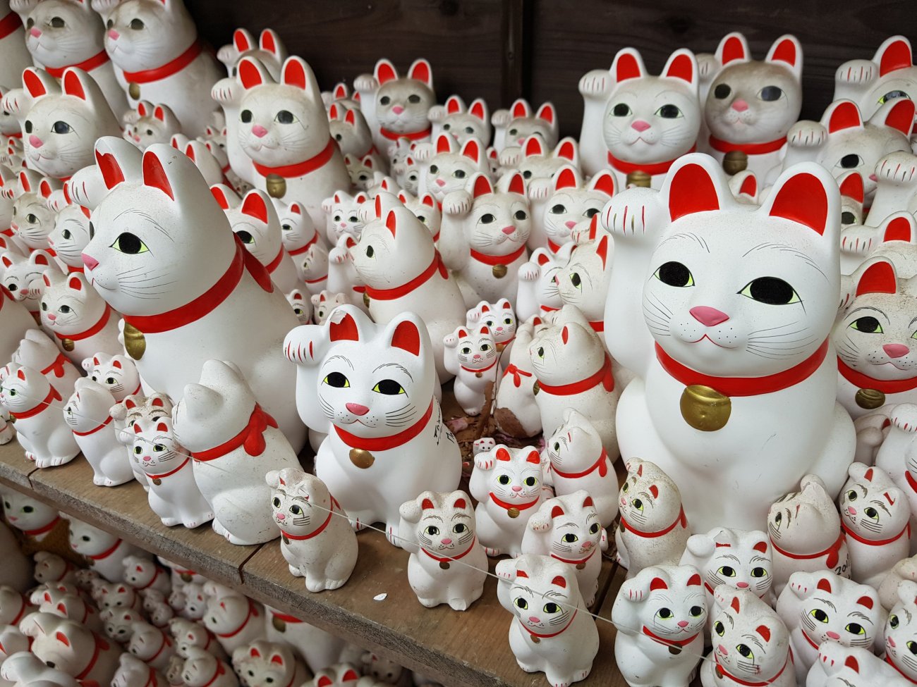 According to legend, a feudal lord was saved from a lightning bolt because the cat of the temple abbot waved at him. a thunderstorm. Curiosity made him walked towards the temple. At that moment, a lightning struck a tree, sending a huge branch crashing down. Had he stayed on his course, he would have met an untimely death. Feeling grateful, he became a patron of that monastery and the belief of the lucky cat became cultural over time. Many believe that the life saving cat is a manifestation of Kannon.