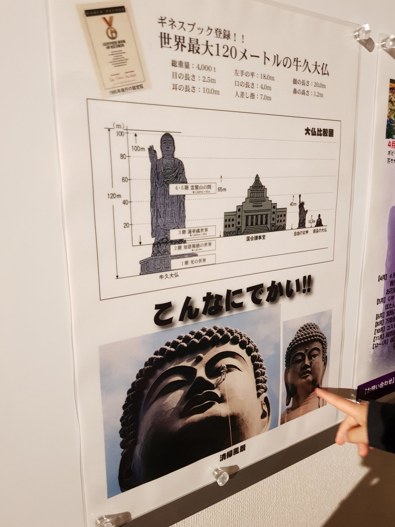 Some picture exhibits with information of the giant statue.