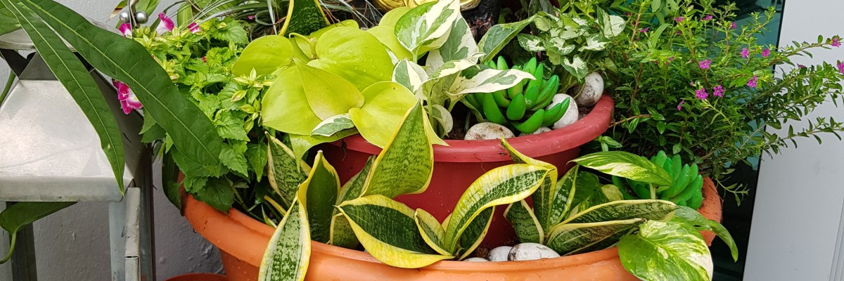 Arrange the plants according to preference, I inserted the plants into the empty spaces to fill up the pots.