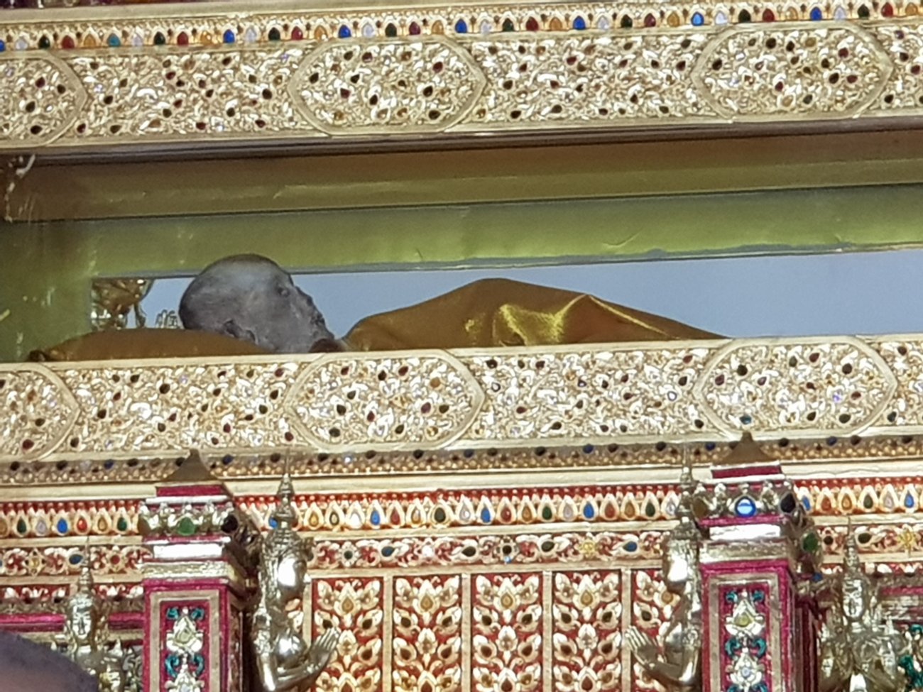 Since all mundane matters are impermanent, the Guru monk had also passed away. However, his earthly remains refused to decompose and his body is still lying in state for worshipper to pay their respect.
