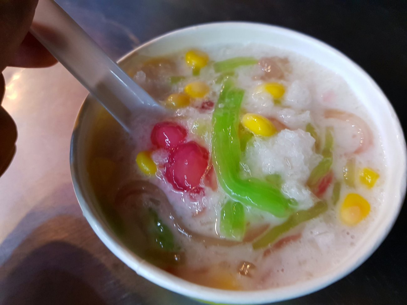 The shaved ice on chilled coconut milk with sweet condiments really cools you on a hot tropical night.