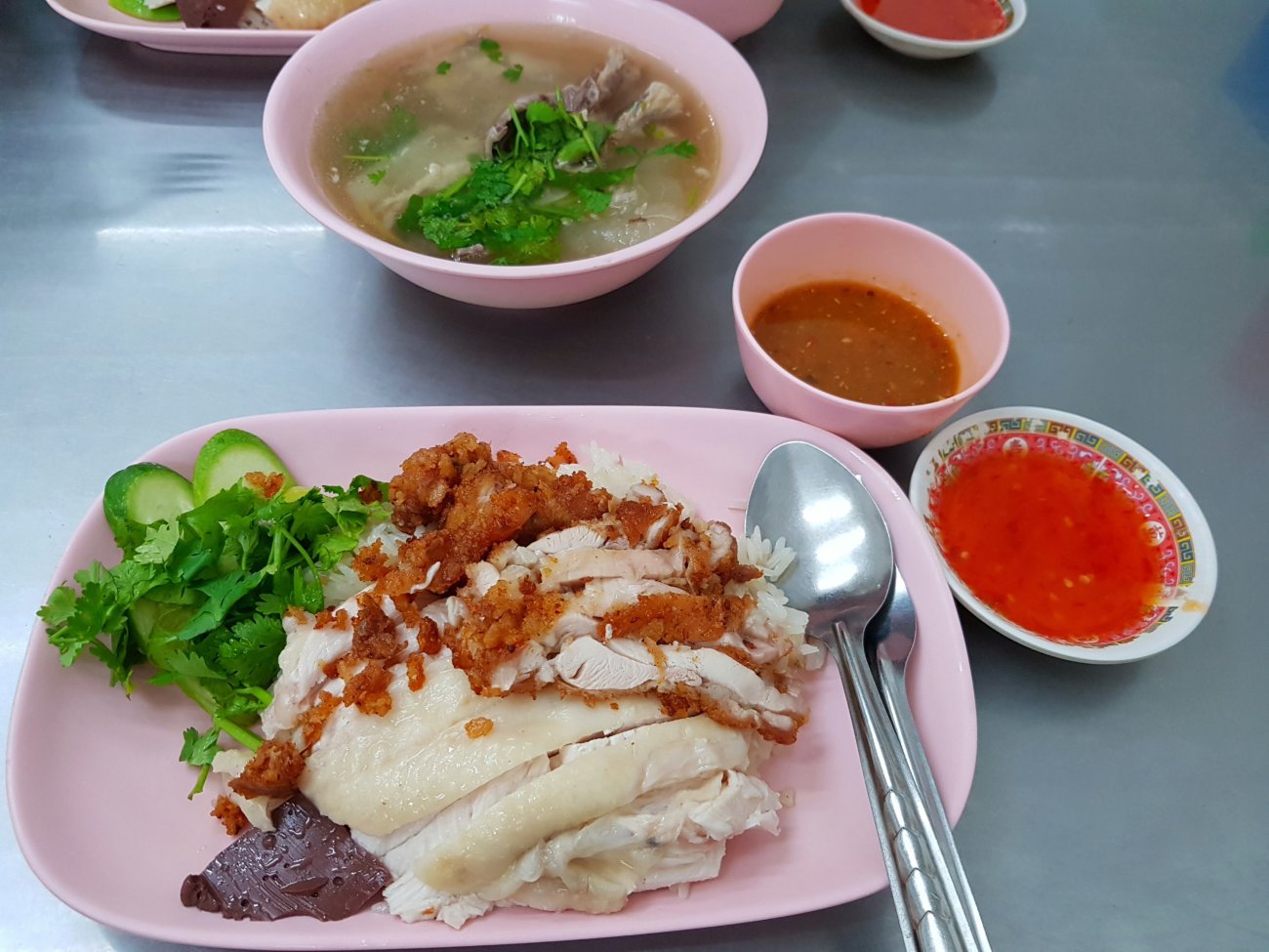 The generous serving of chicken makes this meal a joy. All for only 55 bhat! Show picture to order.