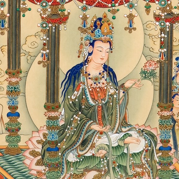 “What is Avalokitesvara Bodhisattva?” You ask me and I don’t know too, but now our Sixth Patriarch (referring to the holy vajra body of Huineng Zen master) is sitting here (the talk was probably given in the zen monastery in China), he had said long ago: “Compassion is Avalokitesvara, and joyful giving is Mahāsthāmaprāpta