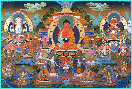 Without further explanations from qualified masters, the above is again open to personal interpretations. For beginners in the path, the meaning of the verse may be limited to a literal interpretation. There is nothing wrong with that. It provides a sense of security, a sense of refuge. A safe place where we are protected from all external harms. This is represented by bejeweled railings surrounding the world and bejeweled nets in the sky. Bejeweled means of finest quality.