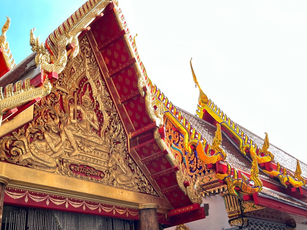 The temple is beside a river and you can buy fish food at 10 bhat to feed the fat fishes.