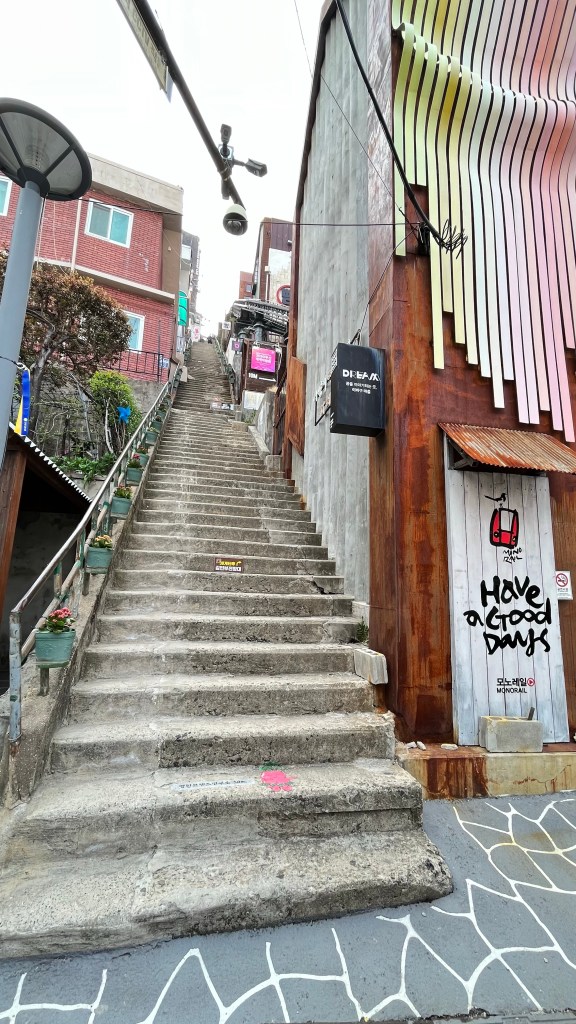 Located within the Chinatown area is a steep flight of stairs to a hill top. To go there, you just need to go opposite the Busan station, and here is the google location.
