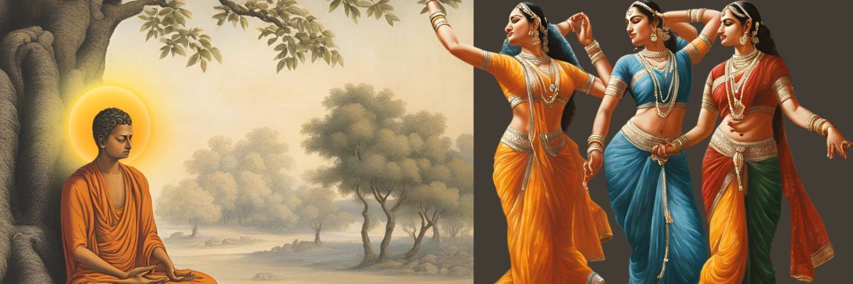In the fifth week after Nirvana, the Buddha encountered a test of his enlightenment. Mara’s daughters, Tanha (desire), Rati (lust), and Raga (sensual pleasures), attempted to captivate Buddha with their seductions.