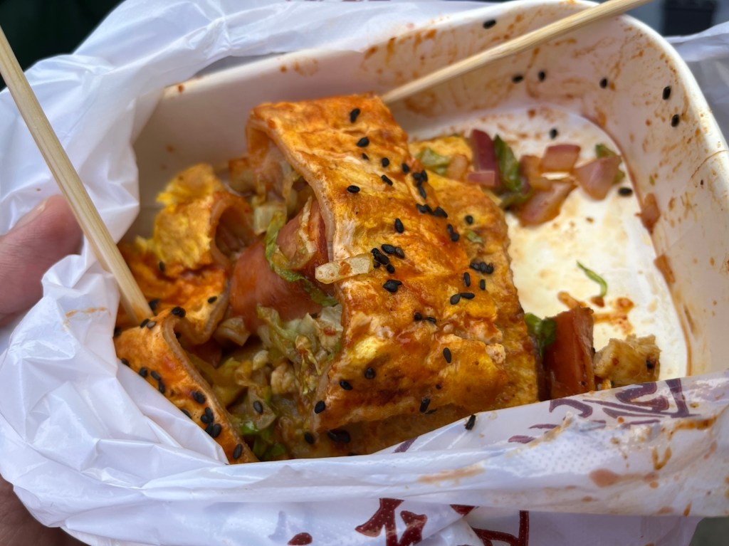 I finally mastered courage to try street food and was so glad I did so. Love the new exotic taste. Plus I was eating by the roadside without proper utensils, and had to rely on bamboo pick.
