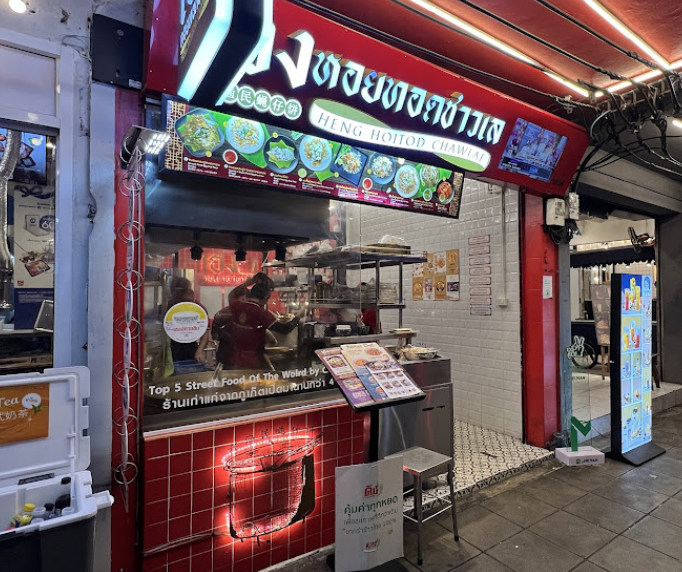 This restaurant serves traditional Thai seafood dishes alongside grilled seafood. Notice the Michelin signs plastered on the shop front? Their menu is extensive, but we only managed to sample three dishes. The grilled scallop was my favorite. They innovatively incorporate a piece of fatty pork into the scallop before grilling, and the seasoned pork fat truly enhanced the flavor! I imagine a fine-dining establishment might keep this secret ingredient hidden, but this street-side stall-turned-restaurant proudly displays it in the dish. The pork was delicious, too. Coupled with their homemade plum and chili sauce, it was simply yummy.
