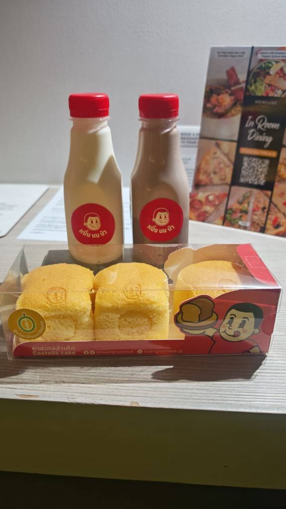 After dinner, we walked a bit to help with digestion and came across a brightly lit stall with a line of people waiting in the rain. It must be good, right? So, I got hungry again! Nueng Nom Nua (Banthat Thong) specialized in cute little toasted buns with their signature flavoured milk. I ordered takeout to enjoy later in my hotel room, which was a good idea. No QUEUE! The bread was soft, the filling was tasty, and the rich milk made it a perfect late-night treat.