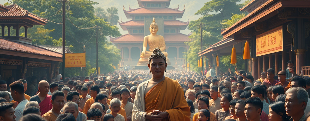 The following day, King Bimbisara invited the Buddha to the palace for a meal – an invitation the Buddha accepted. News of his arrival had already spread through Rajagriha like wildfire, fueled by the king’s personal welcome and the sensational conversion of the famous, long-haired Kassapa brothers, who now appeared with shaven heads.