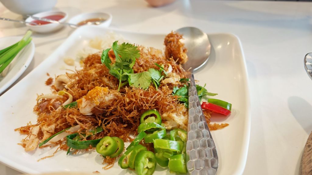 My first stop was a restaurant called Tek Heng, known for its signature dish: crispy noodles. The tiny, fine noodles were surprisingly enjoyable, almost like a savoury snack. They came with preserved vegetables on the side, whose acidity balanced the richness of the deep-fried noodles nicely. I ordered a small portion since I wanted to try other dishes as well.