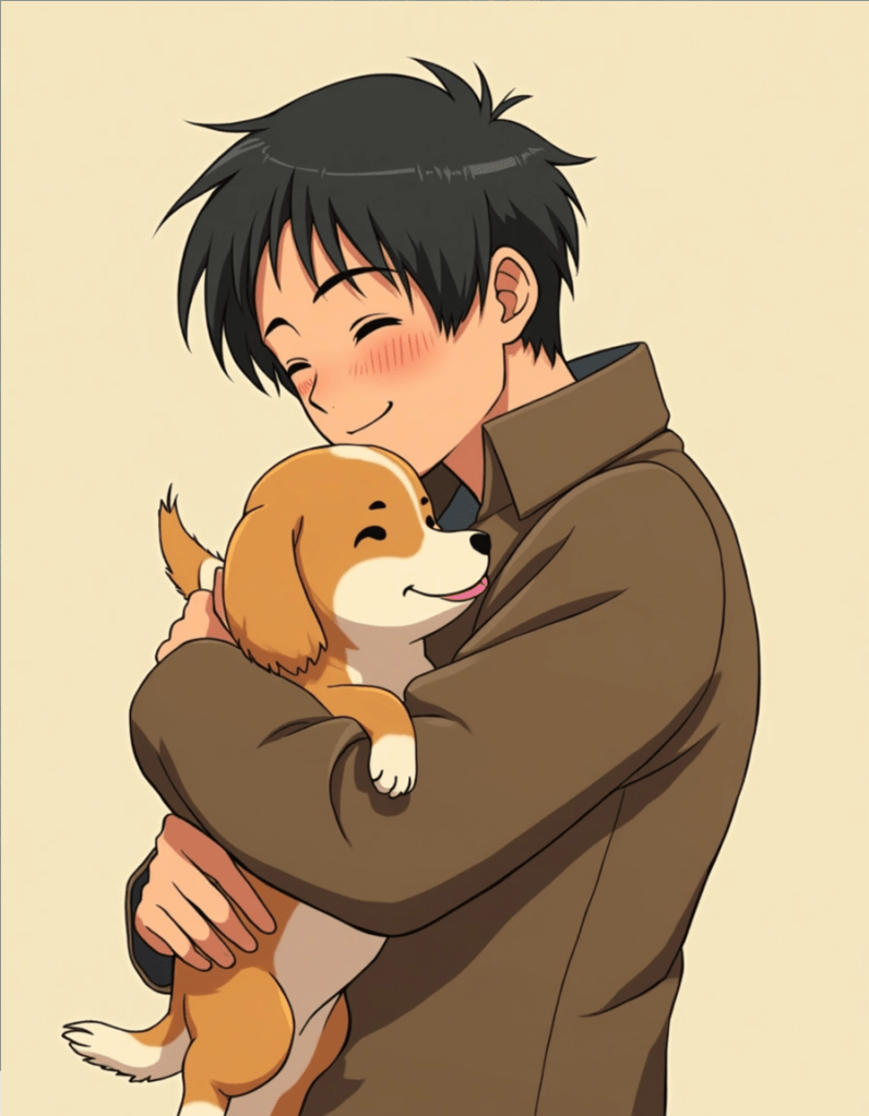I was hugging my dog—cradling him the way one might carry a small child. I patted his back, stroked his fur, and told him what a good boy he was. He must have felt the affection, because in return, he turned and licked my ear.