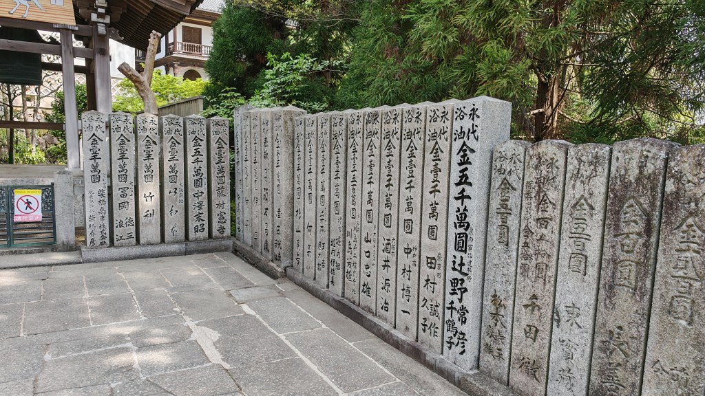 Along the path, I noticed rows of stone pillars inscribed with donors’ names, many accompanied by staggering amounts—millions of yen. It made me reflect on a familiar pattern across many parts of Asia: a relationship with the divine that can feel almost transactional. If a wish is fulfilled, an offering follows.