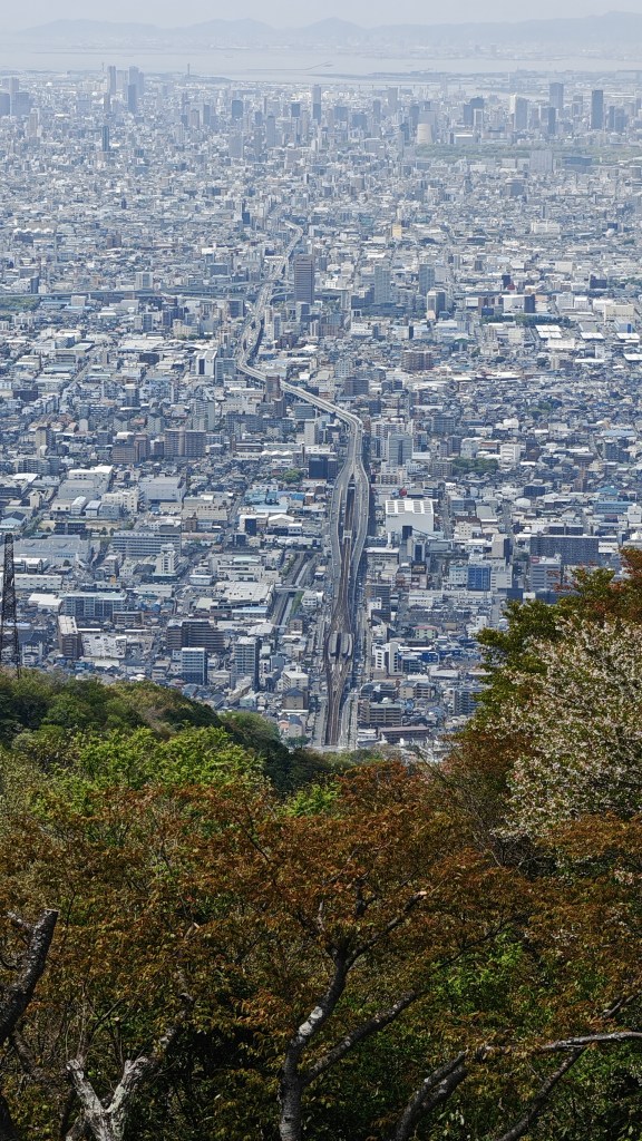 From the top, the landscape opens up into a sweeping panorama. The city of Osaka stretches out in the distance, and on a clear day, even Kobe can be seen.