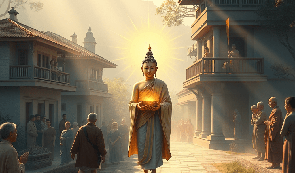 The Buddha on Alms Round in Kapilavatthu The next morning, the Buddha entered the royal city of Kapilavatthu on alms round, accompanied by twenty thousand arahats. Yet not a single member of the royal family came forward to greet him. As he reached the city gate, the Buddha […]